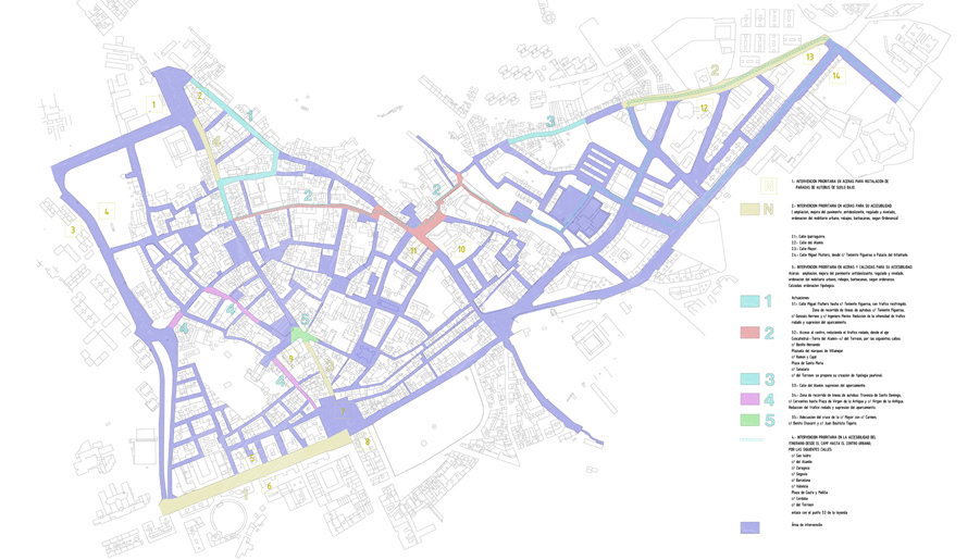 The study about the improvement of urban accessibility in the city of Guadalajara, aims to carry out an analysis of the urban fabric of the city, its infrastructure and equipment, identifying deficiencies and barriers in the field of architectural accessibility, and providing different proposals of actions. As a first objective, two areas of action have been defined in the city, where it is intended to establish priority itineraries in which to intervene to make accessible. In successive phases, these itineraries will increase by creating an accessible mesh that guarantees the free movement of citizens.