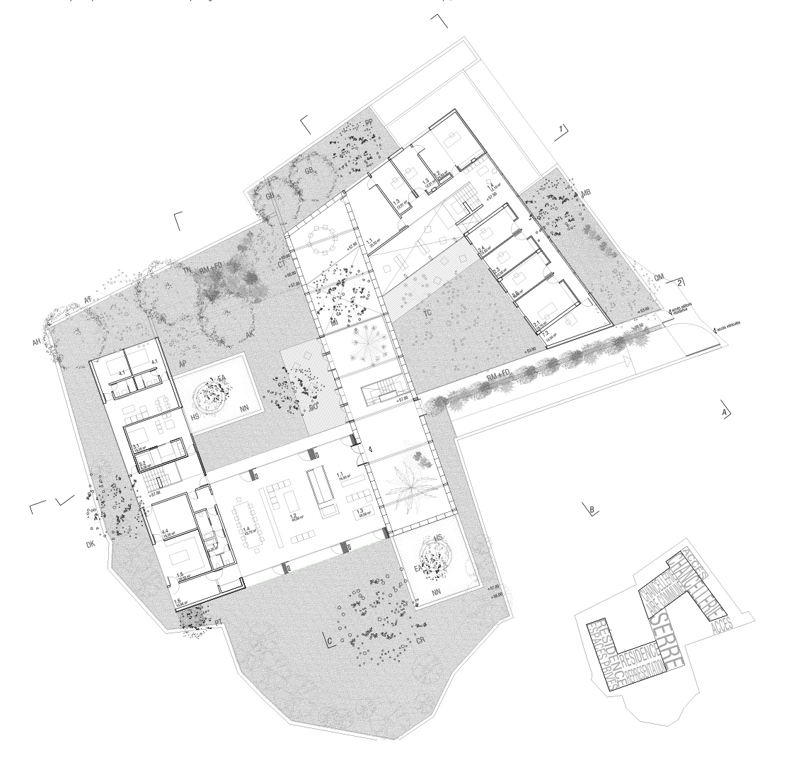 The project was conceived with the intention of responding to a place surrounded by tall buildings. For this reason the project’s intention is to create an intimate “world” with connections between patios that offer pleasant views from the inside.