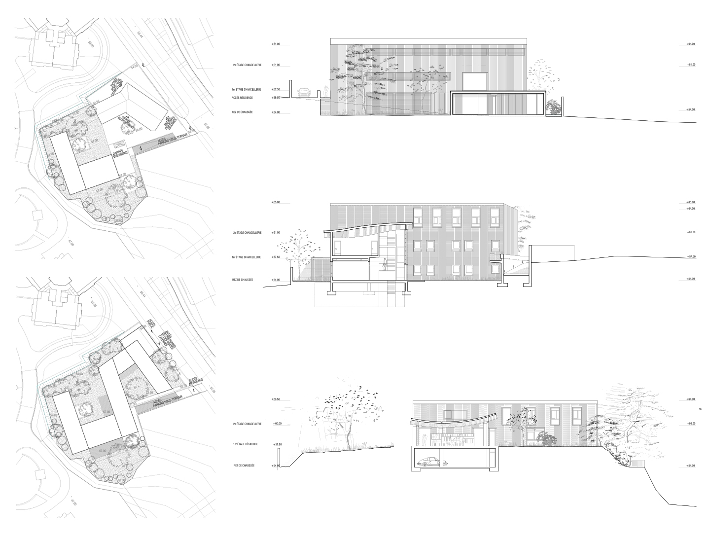 Volumetrically it is composed of three monolithic pieces: the greenhouse, the chancellery and the residence. The greenhouse functions as the key of the project, an intermediate filter preventing the other two volumes connect visually. The union between them is made through two smaller constructions with curved decks that emphasize the interior space and its connection with the exterior.